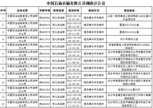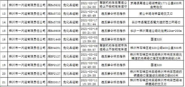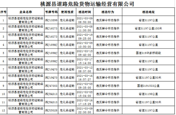 为加强危险化学品道路运输安全管理,严控危险化学品运输车辆肇事肇祸风险。近日,省交通问题顽瘴痼疾集中整治办公室梳理了3月份危化品运输五类重点交通违法(超速、疲劳驾驶、违法停车、不按规定车道行驶、违反禁限行规定)查处总量排名前五的企业,其中株洲市一汽运有限责任公司21起,长沙中国石油运输有限公司湖南分公司13起,株洲市天成联运有限责任公司12起,常德桃源县道路危险货物运输经营有限公司12起,永州市永合运输有限公司9起,共计交通违法67起,涉及危化品运输车辆55台。全省各级顽瘴痼疾整治办公室将按照属地管理原则,迅速组织有关部门开展约谈整改,督促企业落实主体责任,全力消除交通安全隐患。