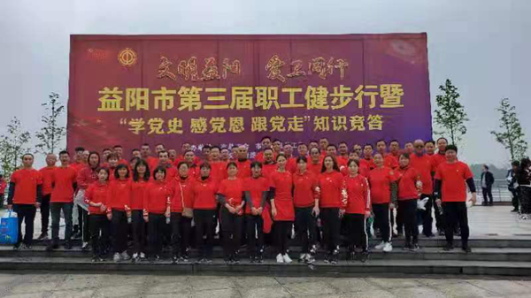 4月26日上午9点,益阳市主办的“永远跟党走奋进新征程”和益阳市第三届职工健步行暨“学党史感党恩跟党走”知识竞答活动在奥林匹克公园北门广场正式开幕。此次活动是近年来益阳市组织覆盖面最广、参与人数最多的一次大型职工文体活动。健步行从奥林匹克北门广场出发,终点佳宁娜广场,全程5.2公里。