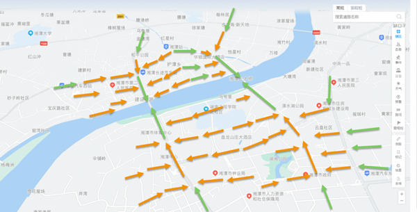 基于以上原因,湘潭交警将雨湖区三大桥上桥片区的区域所有的信号灯采取区域整体策略控制。在早晚高峰时段,路口开始分段限制驶往三大桥的车流;确保驶往三桥主道和匝道的车流尽量不超过桥面两车道承载的极限,从而最大限度消除主道和匝道由于过载溢出而造成的排队混乱情况,确保主道和匝道的车流量“进出平衡”。