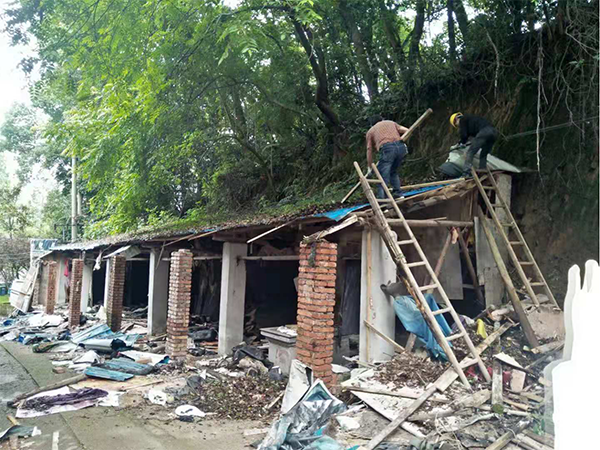 益阳市创建全国文明城市以来,公园作为重要实地验收点位,按测评标准公园周边无私拉乱建要求,该“鬼屋”正好在测评范围内,加之建筑年久失修、破烂严重,且建筑属违章建筑,未在公园整体规划区内,影响我市创建工作,近年来,市相关单位因创文要求多次协调相关执法部门拆除未果;2021年创文、巩卫迎检工作开展以来,市国卫复审迎检工作会议,市创文办日常实地点位督查,均要求对此问题进行整改,市级相关领导也相当关注,向我局进行了交办,我局高度重视,局长亲自调度,认真研究,成立专班协调,并派专人到现场跟踪问效,工作专班本着合理合法合规的原则与房主开展公平协商,通过讲党的政策、明创文要求、摆拆迁规定、讲法律常识、尽人文关怀相结合,以开展党史学习教育,为群众办实事为抓手,积极协调争取当事人的理解配合,自行拆除为主,将违建拆除老大难问题在交通运输系统办成民生实事。