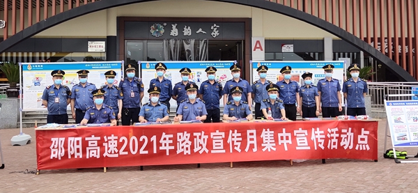 5月25日,湖南高速集团邵阳分公司联合邵阳市交通运输综合行政执法支队在沪昆高速宝庆服务区A区开展2021年“路政宣传月”活动。