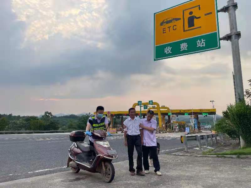6月1日下午五点,一位老人推着电动车从武深高速浏醴段社港收费站入口往高速上走去,当班班长彭衎立即上前制止,走近后发现老人浑身发抖、神情恍惚,他赶紧上前帮老人扶住车子,并呼叫站内值班人员。