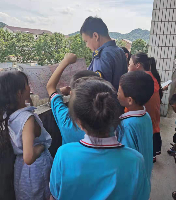 副大队长石军以“快乐暑期,安全暑期”为宣传主题,通过上安全知识课,发放“安全生产月”宣传手册等形式,用通俗有趣的语言向学生们详细讲解了干粉灭火器的使用、厨房起火如何灭火,提醒学生们现在正值夏季天气炎热,是游泳安全事故的多发季节,请热爱生命,珍惜生命,不要擅自下河游泳。