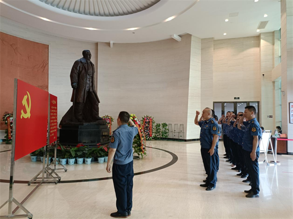 下午,在任弼时纪念礼堂,支队直属六大队支部书记殷运六带领全体党员,向任弼时同志雕像三鞠躬并敬献花篮。“我志愿加入中国共产党,拥护党的纲领,遵守党的章程,履行党员义务……”,洪亮的声音穿透大厅,全体党员干部面向党旗庄严宣誓,重温入党誓词,庄严的誓词、高昂的士气表达了直属六大队党员矢志不渝跟党走的决心和永葆忠诚的坚定信念。随后,全体人员跟随着纪念馆讲解员一起追忆那段峥嵘革命岁月,任弼时同志16岁参加革命,46岁英年早逝,他一心为革命,心里只装着人民,一生严格自律、艰苦朴素、勤俭节约,从不搞特殊待遇,从他身上折射出共产党员大公无私、清正廉洁的本色。“任弼时同志一生有三怕,一怕工作少、二怕用钱多、三怕麻烦人”,他的那句“能坚持走一百步,就不走九十九步”的准则,让在场所有人为之深深感动。