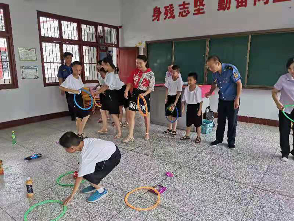 课后,在孩子们盛情邀请下,大家与孩子们一起进行了套圈的游戏。