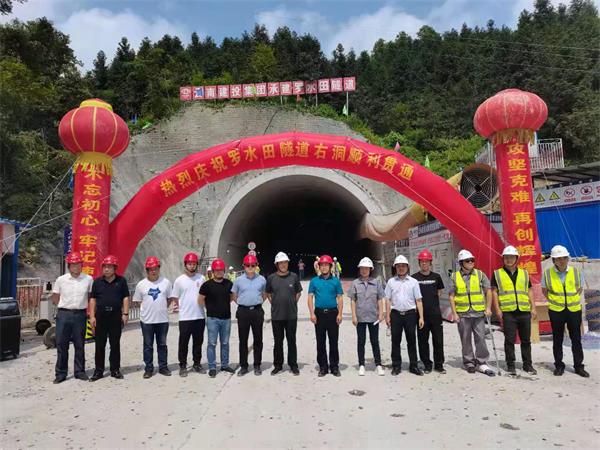 为庆祝芷铜高速项目首座隧道贯通,5标项目部在罗水田隧道右洞进口举行了隆重的贯通仪式。云南建投交通建设股份有限公司党委书记、副董事长罗玉红,芷铜高速麻阳苗族自治县协调指挥部指挥长张嗣良,芷铜公司党支部书记、总经理袁海清等相关领导职工参加仪式。