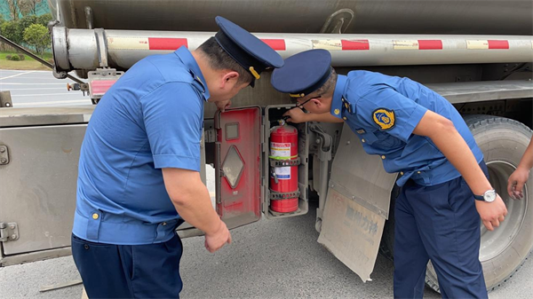 检查过程中,执法人员多次在高速出口、重要公路路口,采取流动和定点检查相结合的方式进行巡查,查看危化品运输车承运人和车辆证件随车情况、承运危化品货物类别、货物清单比对、车辆安全设施配置等情况,并将危化品道路运输安全监管列入日常中心工作,进行常态化监管。