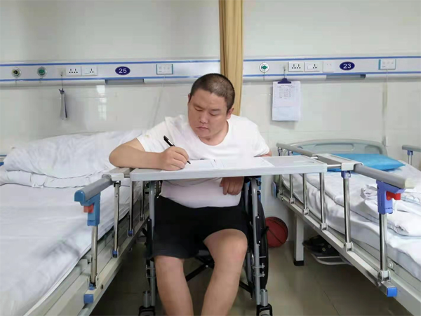 参加考试的是益阳市高新区交通运输事务中心职工何泮。何泮同志去年底因突发脑溢血住进了重症ICU病房,现虽已脱离生命危险,但身体半边瘫痪,不能赴现场参加由市交通运输局组织的工勤技能考试。在得到该同志有参考意愿后,市交通运输局高度重视、积极支持,委托高新区交通运输事务中心工作人员赴现场进行了一场特殊的监考。一个半小时的考试,监考人员用心陪伴、何泮同志认真考试,一笔一画,即使费力,却贵在努力、坚持。
