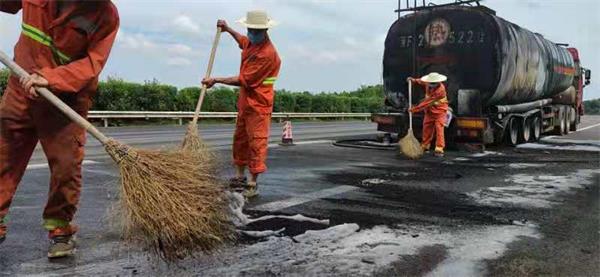 至14时23分,沥青罐车明火已被扑灭,为防止复燃,消防人员一直持续浇水降温。14时34分罐车灭火处理完毕,养护、施救人员加紧对现场进行了清理,交警部门解除交通管制,事故现场恢复正常通行。