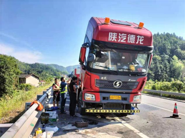 7月15日凌晨,一辆运输大件货物的长途货车在G55二广高速安化段K2014+680处发生故障,停靠在应急车道与行车道之间,此处距离隧道不到100米,极易引发安全事故,情况十分危险。