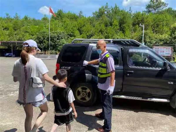 了解情况后,周律一边安慰男子一边用对讲机呼叫站内工作人员前来帮忙。快速赶来的工作人员看到热得满脸通红的孩子心疼不已,立刻将孩子带到收费站食堂休息,然后齐心协力将故障车辆推到收费站院内。