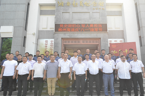 “立正!向右看齐”“报数”“齐步走”,熟悉的口令响彻音绕耳旁,“团结就是力量,这力量是铁,这力量是钢……”,嘹亮的军歌院内回响。为庆祝中国人民解放军建军94周年,营造关心关爱复转军人的良好氛围,激发湖南省高速公路集团有限公司郴州分公司复转军人爱国奉献、自觉践行初心使命的热情。7月29日,郴州分公司结合当前党史学习教育和“我为群众办实事”实践活动,开展“党史润初心 军人勇担当”主题活动,向军人致敬。