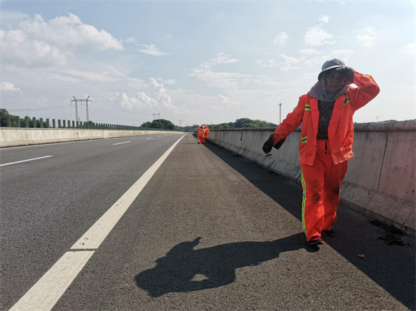 炎炎夏日,万物皆寂,唯有蝉鸣。这是一个烈阳高照的下午,就连高速上行驶的车也因为这灼热的阳光而减少了不少,但就是这样一个热到人蒸发的下午,我们益南高速的养护工人,丝毫不在乎头顶的太阳,为了益南高速的整洁,不辞辛苦的劳作着。