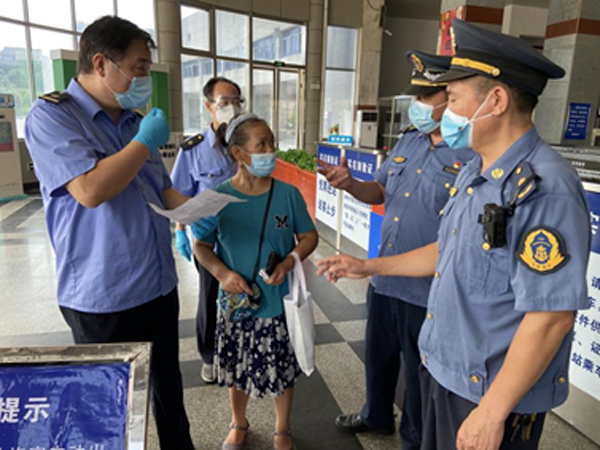 严守旅客“检测关”。根据市中心城区疫情防控措施要求,执法人员在一线督促旅客进入场站均须严格做到佩戴口罩、配合测温、查验三码,同时旅客必须持48小时内核酸