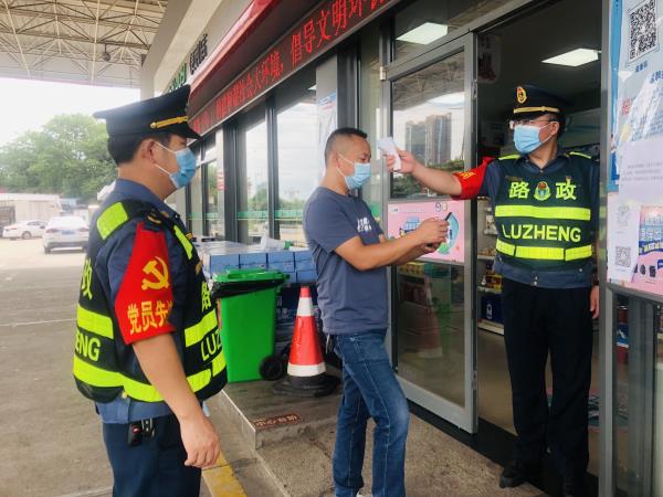 抗“疫”当前,初心不改,使命必担!队领导每天坚持不定时深入服务区防控疫情一线,认真检查服务区疫情防控、环境卫生等工作,协助服务区对出入人员进行体温检测、查验健康码行程码等工作,对服务区公共区域消杀、一车一消毒等疫情防控各项工作落实情况进行逐一核查,对检查中发现的问题当场下达整改通知书,并现场督促整改。