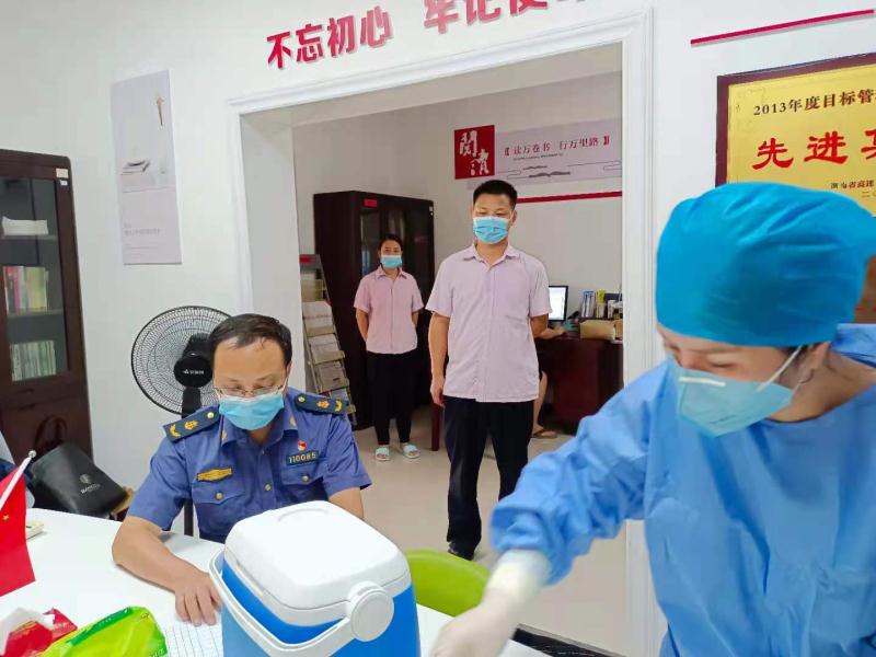 为全面筑牢疫情防线,按照湖南高速公路集团公司有关疫情文件要求,古港收费站积极与当地卫生院沟通联系,在8月9日上午由当地卫生院到站为职工进行核酸检测。