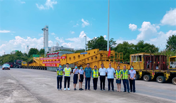 8月19日12:00湖南省高速公里集团有限公司长沙分公司北盛收费站迎来第一台特大件运输车辆,该大件系特变电工衡阳变压器有限公司为国家重点工程建设项目——国网特高压1000千伏南昌-长沙输变电工程长沙站生产的核心设备。车体长97.45米、宽5.25米、高4.95米、276个车轮、72个车轴,车货总重为409吨。早在8月17日就获悉该车的通行线路和时间节点,如此庞然大物即将抵达北盛收费站,大家很期待一睹“绿巨人”的尊荣。为确保该特大件运输车辆能快速、安全的在北盛收费站通行,多次与收费业务主管部门探讨收费政策,组织站部业务骨干分析该车的车轴信息,做好应缴通行费的预算,研究了一套准确、快速操作的流程。