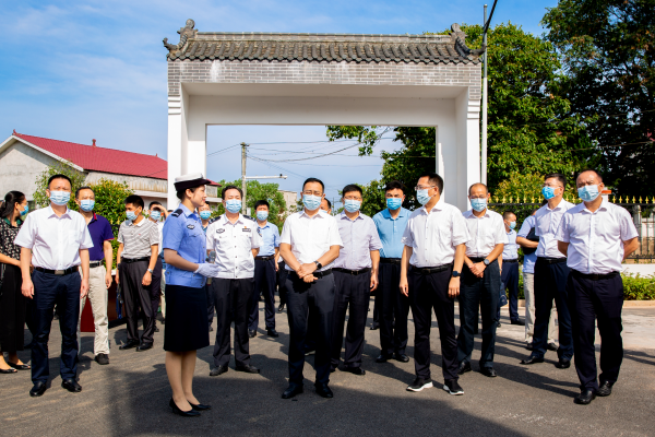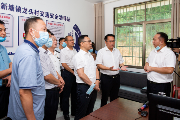 图:衡阳市委常委、常务副市长毛朝晖、副市长胡志文、杨洪峰在衡东县新塘镇龙头村现场观摩“两站两员”建设示范点和潭泊超限检测站,衡东县委书记陈礼洋,县委副书记、县长徐志毅陪同