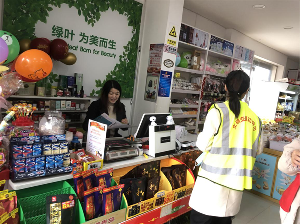 “老板,您好!我们是黄金园街道的交通安全宣传志愿者,这是我们道路交通安全知识小册子,上面有各种安全小知识,请您认真阅读,平时出行多注意安全。”志愿者们一边发放宣传册一边给居民们讲解道路交通注意事项,用最近发生的事例来警示居民们,时刻提高警惕,认真遵守交通规章制度,确保高高兴兴出门,安安全全归来。此次活动共发放交通安全知识宣传资料20余家门店。