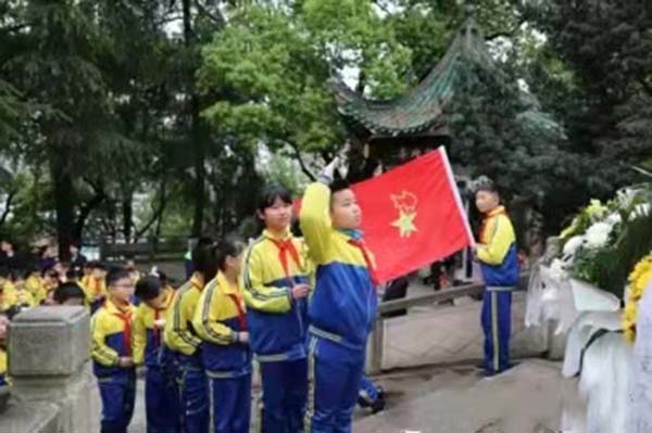 胸前的红领巾是少先队员的标志,也是一份责任。大队辅导员带领全体少先队员郑重地重温入队誓词,牢记入队初衷,牢记历史,把对先烈的最深情的缅怀和最崇高的敬意,化作决心践行在实际行动中。