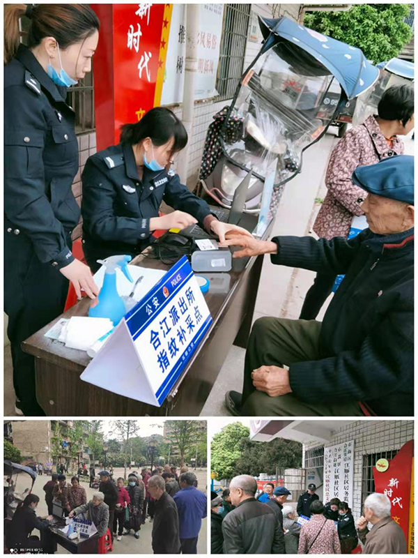 为方便群众就近补采指纹,同时提高指纹补采效率和质量,合江派出所社区民警申国荣带领网格员谭玲在五里牌社区设立指纹补采点为群众补采指纹。