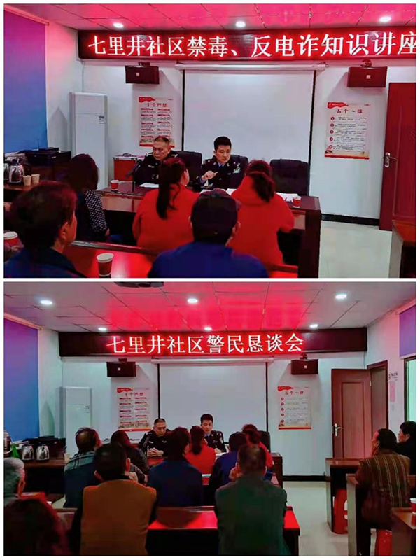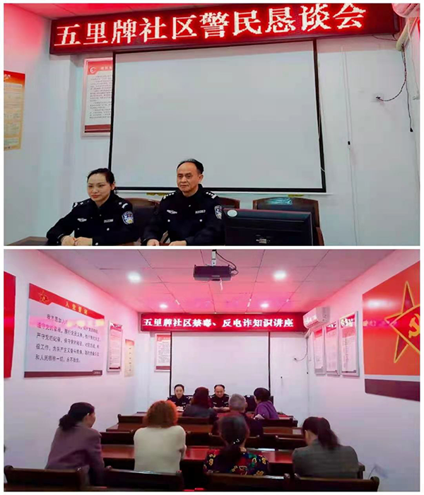五里牌社区民警申国荣带领网格员谭玲组织群众代表开展警民恳谈会,向群众宣传普及反电诈知识,提高群众的安全防范意识。通过全面推进“我为群众办实事”活动,不断提升辖区群众的获得感和安全感,切实增强警民之间的凝聚力和向心力,践行人民公安为人民的初心使命。