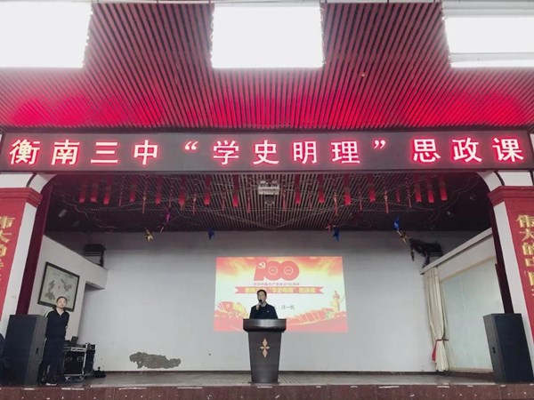 2021年4月16日下午,衡南三中校长许一帆利用第八节课的时间在校礼堂给高二学子们上了一堂“学史明理”思政课。