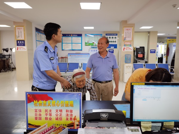 3日下午,一名85岁的老人在家人陪伴下到洪江市公安局防控中心行政服务模块黔城大厅申请办理身份证。因老人年岁已高,无法正常行走,在政务中心保安和大厅工作人员的帮助下往返于身份证照相窗口及办理业务窗口。