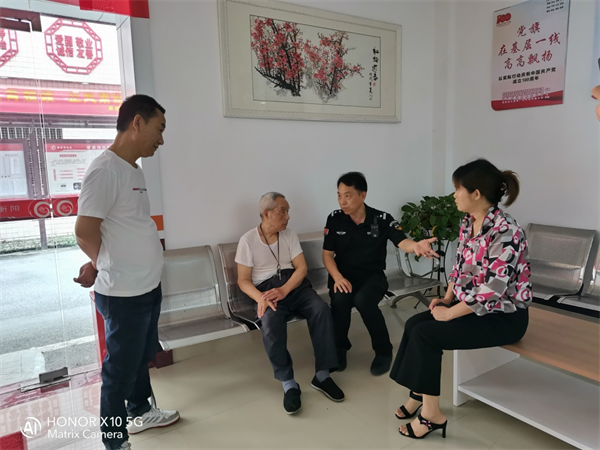 6月10日10时许,衡阳市公安局蒸湘分局巡警大队接110指派,称在廖家湾路有一老人求助,接警后民警快速赶赴现场,到达现场后了解一好心群众见一老人摔倒在地于是扶到路边拨打110求助。民警与老人沟通时发现老人患有老人痴呆只知道自己叫谢龙权82岁,无法提供家人联系方式。 询问四周无人知晓其信息,民警辗转带其来到廖家湾社区居委会打听情况,经过多番打听,居委会一工作人员认识其老人,通过查找户籍信息取得其儿子联系方式,儿子来接老人时对民警感激不尽。