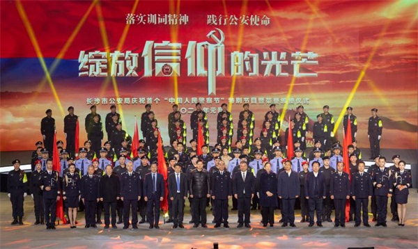 为弘扬警察精神,凝聚社会共识,展示新时代长沙公安忠诚为民的铁军风采,在今年首个警察节期间,长沙公安开展了一系列庆祝活动。此次长沙公安庆祝首个“中国人民警察节”特别节目暨荣誉颁授仪式以“绽放信仰的光芒”为主题,在活动现场对长沙公安机关“十佳先锋警队”“十佳先锋卫士”“十佳优秀辅警”“十佳警嫂”“十佳拥警模范”“百个廉洁家庭”等荣誉称号进行颁授。荣获全国首批“枫桥式公安派出所”的高新区公安分局雷锋派出所,不顾个人安危解救受伤人质的宁乡市公安局民警刘梦颀,用身体充当救生绳、成功解救轻生女孩的雨花公安分局辅警曹凌,16年不离不弃照顾因公伤残高位瘫痪丈夫的好警嫂肖慧君,与长沙公安共同创制警务纪实节目《星城卫士·守护解放西》的中广天择传媒股份有限公司总经理傅冠军,孝老爱亲、家风清正的刑侦支队民警陶竞的家庭等一批来自公安基层一线的集体、个人、民警家庭以及多年来在背后默默关心支持长沙公安工作的警嫂、社会各界人士受到隆重表彰。
