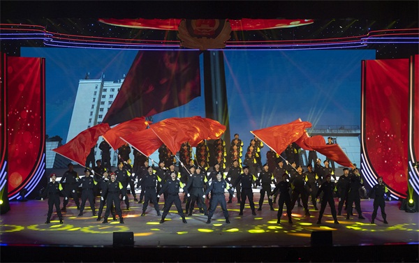 荣誉颁授仪式穿插了由全市公安机关民辅警自编自演的文艺节目。通过歌曲、舞蹈、情景剧等多种多样的艺术形式,刻画出长沙公安广大民辅警在抗击疫情、维稳安保、打击犯罪、服务群众中表现出的英勇、奉献与担当。