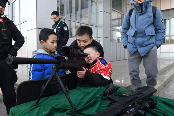 首个“中国人民警察节”临近,1月9日上午,长沙市公安局在特巡警支队樊塘训练基地组织开展“庆祝警察节 警民零距离”警营开放周特警专场活动,市人大、市政协、市公安局形象监督员代表及广大市民群众共计150余人走进警营,现场观看特警警务实战演练、警犬表演等“绝活”,零距离参观各种高精尖武器装备。