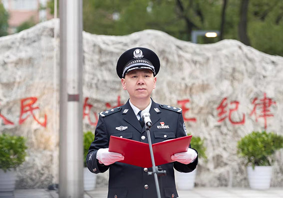 “我宣誓,我志愿成为中华人民共和国人民警察,献身于崇高的人民公安事业,坚决做到对党忠诚、服务人民、执法公正、纪律严明……”随后,全体民辅警面向警旗重温入警誓词。他们警容严整,精神抖擞,高举右拳,庄严宣誓。一声声铿锵誓言久久回荡,表达了他们时刻不忘从警初心、永葆忠诚政治本色的坚定决心。