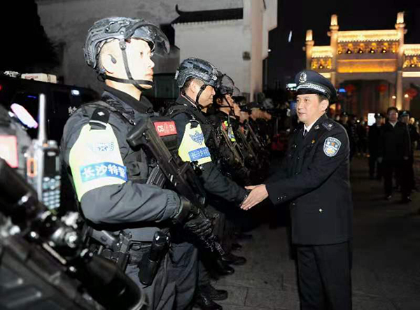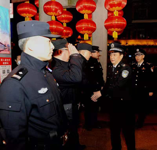 除夕夜,长沙五一商圈张灯结彩,到处洋溢着祥和喜庆的节日氛围。许显辉一行先后到天心区太平街、火宫殿等地公安执勤点检查督导安保工作,详细了解勤务部署、巡逻执勤、社会面管控、交通疏导等安保措施执行情况,向一线执勤民警致以新春祝福并与群众亲切交流。随后,许显辉来到长沙市公安局情报指挥中心,看望慰问节日期间仍然坚守在接处警第一线的执勤值班民警,要求大家牢固树立“群众过节、公安过关”的意识,准确把握今年春节期间社会治安规律特点特别是安保维稳工作存在的变量风险,针对性落实打防管控各项措施,确保让人民群众过一个欢乐祥和平安的新春佳节。