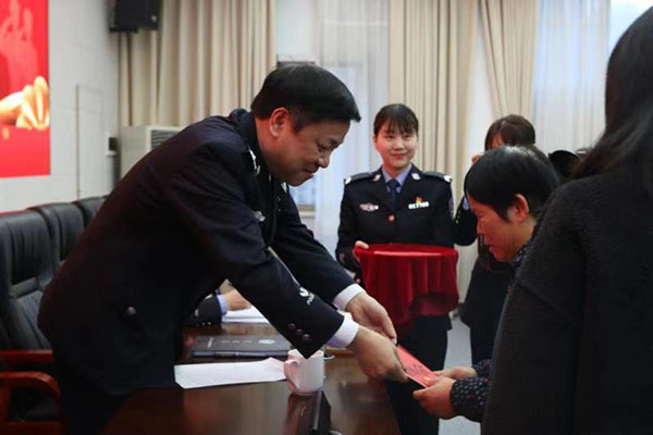 “一个好汉三个帮……”分局党委副书记、政委彭亮为小轩等4名困难学子送去了滚烫烫的“雷锋助学金”,并叮嘱他们积极面对生活、发愤图强、将来做一个对社会有用的人。