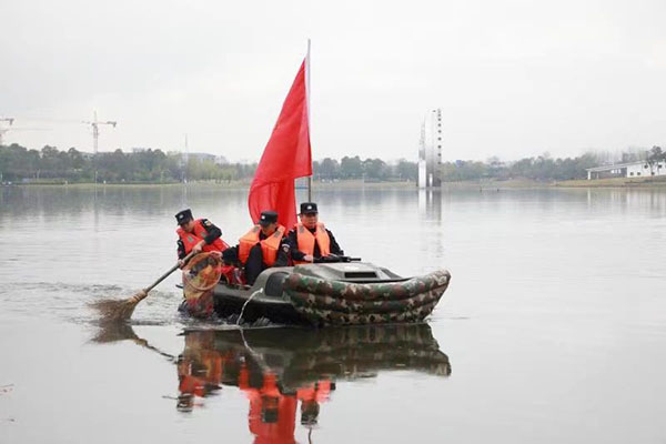 在雷锋公园,一辆特别的车辆在公园的湖面上行驶,巡警大队的民辅警们正驾驶着水陆两栖车打捞湖里的白色垃圾,对湖面垃圾进行彻底处理,他们利用装备优势为居民提供了干净的湖面。“这个水陆两栖车有一个优势,既可以在陆地上行驶,也可以在水面上行驶,我们就利用这个特点定期到雷锋公园清扫湖面,尽自己一点微薄力量。”巡警大队副大队长谭柱说道。