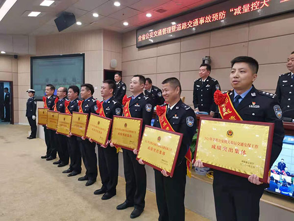 会议认为,2020年全省各级公安交管部门全力以赴防风险、压事故、保有序、惠民生,有力确保了全省道路交通安全形势持续稳中向好,为服务经济社会发展、保障群众安居乐业作出了重要贡献:事故防控工作创造历史性佳绩,2020年,全年亡人交通事故起数、死亡人数、受伤人数,同比分别下降6.9%、7.57%、11.21%;全省重特大交通事故零发生、较大事故起数创历史新低,是全国仅有的5个未发生5人事故的省份之一。高速公路交通事故亡人总数为中南六省最低,百公里事故数、亡人数远低于全国平均水平,在全国率先闯出了一条具有湖南特色的高速公路事故精准防控新路;顽瘴痼疾整治取得战略性成果,公安交警发挥主力军作用,集中整治各类交通问题顽瘴痼疾153.98万起,电动自行车登记上牌超过555万辆,重典治乱的严管高压态势持续巩固;重要节点安保赢得决定性胜利,坚决扛起抗疫情、护稳定、促发展的政治责任,投入935名警力设置31个环鄂入省检疫站,发放疫情防控应急物资及人员运输车辆“绿色通行证”7203张,护航防疫及民生物资运输车辆1522趟次,高质量完成了各重要节点交通安保工作;交通管理基础实现突破性进展,全省1557个乡镇设置道安委,110个县市区正式推行“路长制”,累计建成交管站1721个、劝导站点3.04万个、警保联动劝导站1667个,配备交通安全管理员2271名、劝导员2.79万名;《湖南省实施<道路交通安全法>办法》《电动自行车管理办法》出台实施,54项公安交管“放管服”改革持续落地见效;交警队伍建设彰显示范性特色,坚持不懈加强政治建警,持续深化优秀警队创建,扎实开展全警实战大练兵,涌现出一大批先进典型,展示了公安交警克己奉公、无私奉献的良好形象。
