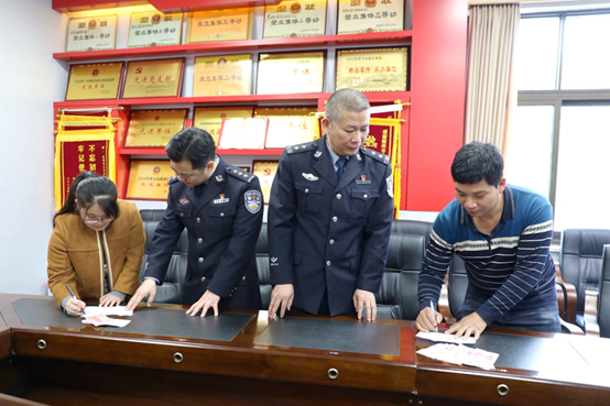 4月21日下午,衡阳市公安局蒸湘分局刑侦大队的会议室里弥漫着浓浓的警民鱼水情,民警为受害群众发放追回的赃款,受害群众给民警赠送写有“为人民服务小偷克星”和“破案神速 全心为民”的锦旗。当天,办案民警还通过微信为另一名身处外地无法回衡的受害人发还了赃款。
