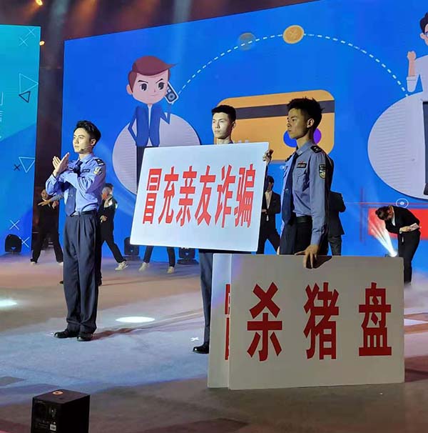 活动在社会各界人士参与录制的反诈宣传视频中拉开帷幕,湖南卫视著名节目主持人汪涵、著名相声演员大兵、“茶颜悦色”创始人吕良以及优秀社区干部、大学生、外卖小哥、网约车司机、公安民警代表共同发出“全民行动·无诈星城”的反诈宣言。紧接着,一个个精彩纷呈的反诈主题文艺节目轮流上演,让观众在一饱眼福的同时,学习掌握到不少反诈技能——长沙公安刑警带来的情景歌舞《全民反诈》,通过新颖时尚的表演形式,教观众识别最常见的八类电信网络诈骗犯罪;由长沙县公安局选送的情景剧《腥动的陷阱》,将真实案例搬上舞台,直观诠释了“裸聊”敲诈的危害,既诙谐幽默又催人警醒;一曲由长沙理工大学学生精心准备的歌舞表演《志愿中国》,开启了“无诈校园”的良好氛围;由笑工场喜剧演员和宁乡市公安民警一同带来的一部以“断卡”为主题的小品《天下无诈》,让在场观众在捧腹之余更加深刻地认识到电信网络诈骗的危害;由长沙公安“网红”民警演唱的《守护解放西》节目主题曲,更是再次引爆现场观众的热情。