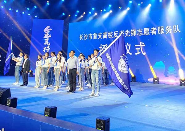 活动现场,伴随着激昂的乐曲,市人大常委会副主任袁黎明,市政协党组副书记、副主席石长松将写有“反诈先锋”的队旗授予长沙理工大学青年学生志愿者代表,标志着长沙首支高校反诈先锋志愿者服务队在长沙理工大学正式成立,队员们将肩负反诈使命,扛起宣传责任,积极传播反诈知识,为更多人敲响反诈警钟,使反诈意识更加深入人心。