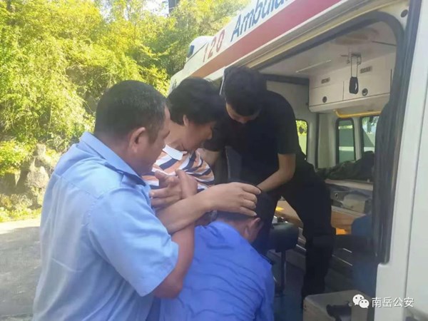 左强带队在中心景区寻找了近一个小时,在梵音亭处找到了张某。张某已年近七旬,现在一条腿不能动弹,疑似骨折,无法走动。民警左强、胡惕波,辅警陈志军三人便轮流背着张某走路下山,经过一个多小时的紧张救助,左强等人在当天下午5时许成功将老人背出深山,并与120急救人员合力将老人送上救护车进行下一步的治疗,目前老人身体已无大碍,老人家属对南岳公安表示十分感谢!