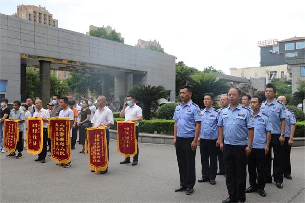民警现场为辖区“杨某某车内财物被盗案”“某某公司电缆线被盗案”“虢某某被电信网络诈骗案”等案件受害群众返还43万余元被盗、被骗资金及摩托车、香烟、电缆线等价值3万余元涉案物品。其中4名受害人向望城警方赠送锦旗,表达对办案民警追赃挽损的感激之情。