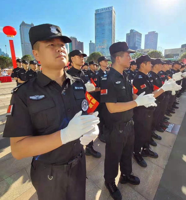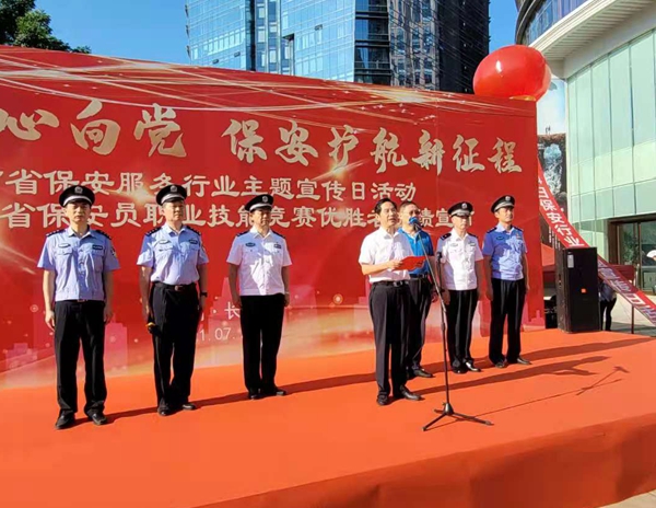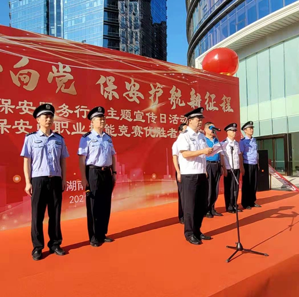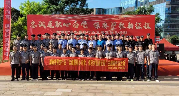 7月23日上午,湖南省保安行业“忠诚履职心向党、保安护航新征程”主题宣传日活动在长沙举行。活动由省公安厅治安总队内保支队长兼省保安协会秘书长张小兵主持,省保安协会会长谭和平、省保安协会顾问兼专家委员会委员赵剑、省公安厅治安总队副总队长兼省保安协会监事长刘绘锦、长沙市公安局内保支队政委张成化、副支队长张志高、长沙市公安局内保支队保安监管大队教导员黄昌、长沙市保安协会秘书长胡舟出席活动。