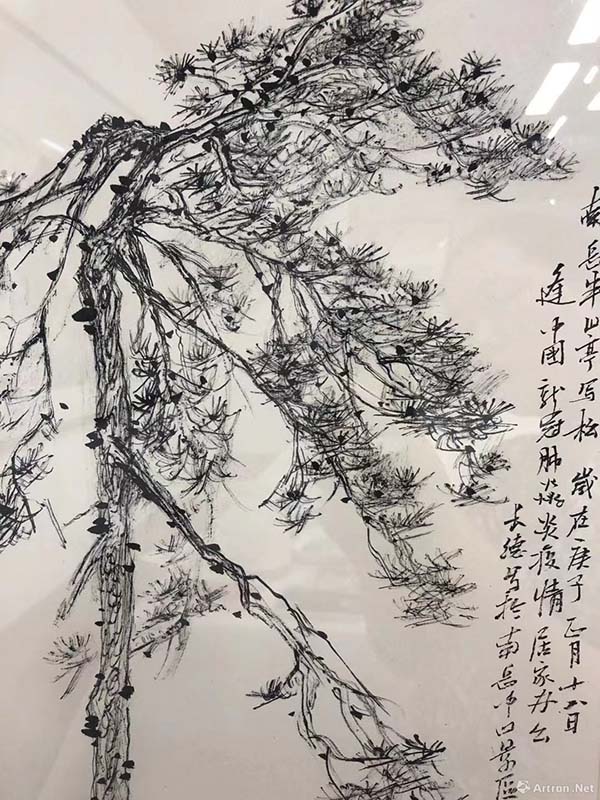 “松树一直是中国画的重要题材之一,从李唐的《万壑松风图》至傅抱石、关山月的《江山如此多娇》。他们笔下的松大多来源于黄山、华山、泰山,而表现南岳松的艺术家和作品相对来说比较少。其实南岳松高大伟岸,外形峻秀,也是中华民族不屈精神和崇高气节的最好体现。黎雄才曾经在南岳留下近百幅写生稿。”为了更好地表达南岳松,谭长德进行了很多实验。