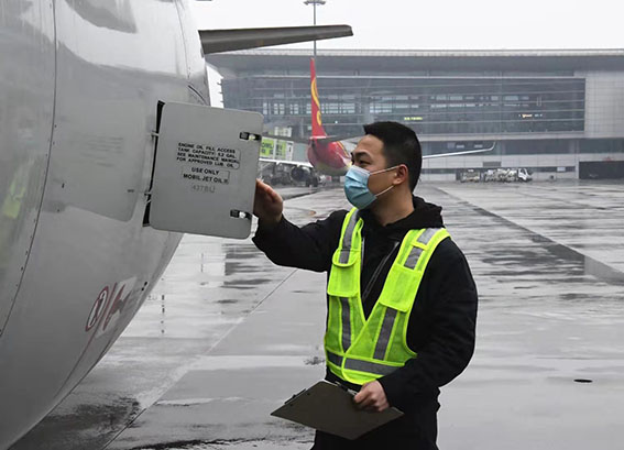飞机轮挡挡好、反光锥摆到位后,司马超开始通过专用耳机联系飞行员确认飞机状态良好,然后开始绕机检查。短停过程中的每一项检查工作都不能含糊,而且必须在规定的时间内按照安全要求和标准完成。