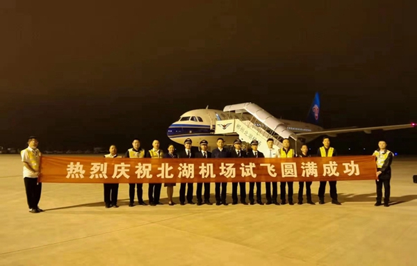 中国南方航空公司机组经过3小时5分钟的试飞,对郴州北湖机场飞行跑道、导航设施、助航灯光、通信设备、飞行程序、净空环境、保障能力等进行了全面、专业的验证。结果显示,各项参数和指标正常,机场相关设施满足通航条件。