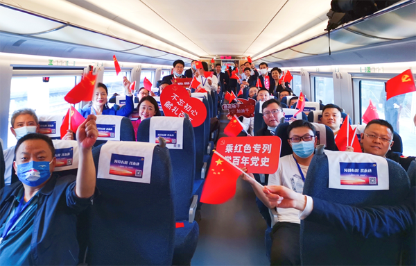 湖南机场集团在空铁联运暨党史红旅活动的首发列车上开展“乘红色列车 学百年党史”诗词朗诵暨知识抢答赛