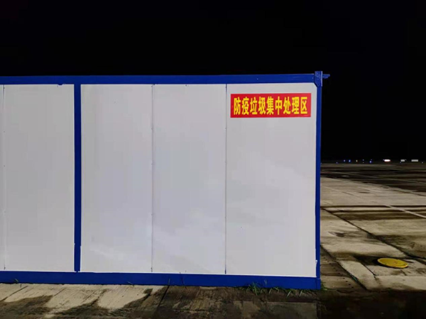 为确保切断可能存在的病毒传播渠道,机场用板房在场内外均设立了防疫垃圾集中处理区,实行内外场防疫垃圾分流,内场特别是航空器上与防疫相关的垃圾严格落实内场就地集中处理。
