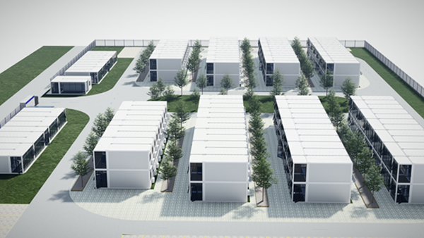 国际航班工作人员集中居住区位于长沙机场3号国际货站北面,货运中心项目规划用地西南角,西邻机场大道,南接3号国际货站进出大道。项目总占地面积为12645.72平方米(18.99亩)。项目整体采用装配式箱式板房,双层结构,按照两人一间进行规划,建设约150个房间,共可容纳约300人。房间拟配备床、桌子、椅子、空调、电视、衣柜、WiFi等基础设备设施,能有效保证集中居住隔离人员的日常生活。此外,项目配套建设了门禁系统、管理医护人员用房、消防、垃圾存放处理设施、停车场等,并按照疫情防控隔离人员防疫要求,配置了相应防疫及保障设施。整个集中居住区与外界通过围墙隔离,园内每栋设置两个出入口,设两个隔离休息区,两个区间走廊通过常闭疏散门进行隔离,最大化减少人员交叉。