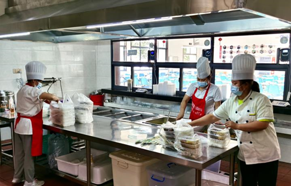 为保障每天近400人次的员工用餐营养、安全,10名食堂工作人员主动加入“隔离式值守”的行列,提前购置9000余个打包餐盒,为实行“分餐”“分流”提供了“硬件”保障,有效阻隔交叉感染风险。